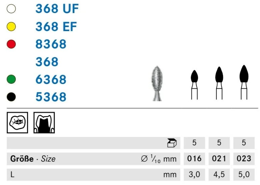 Технічні характеристики Алмазний бор Komet 368UF (полумя, ультрадрібна)