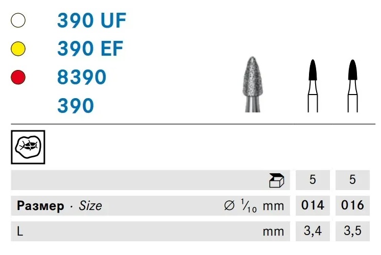 Технічні характеристики Алмазний бор Komet 390.314.016 (граната, нормальна зернистість)