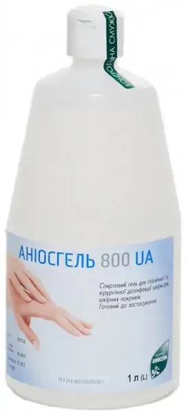 Засіб для дезінфекції рук UA Аніосгель 800 швидкої дії має спиртову основу, не токсичну, добре переноситься шкірою рук, не дратує і не шкідливо впливає на людину. Застосовується для дезінфекції рук шляхом втирання: