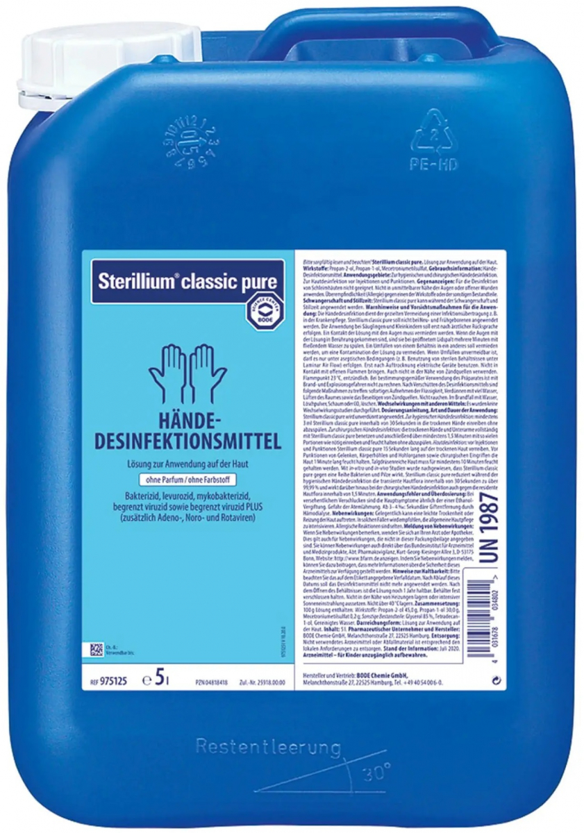 Антисептичний засіб BODE Chemie Sterillium Classic Pur продається готовим розчином, що не вимагає додаткового розведення. Дезінфікуюча рідина не має кольору та запаху.