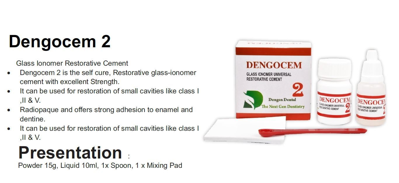 Технічні характеристики Dengocem 2 (Dengen) Склоіономірний реставраційний цемент, 15 г + 10 мл
