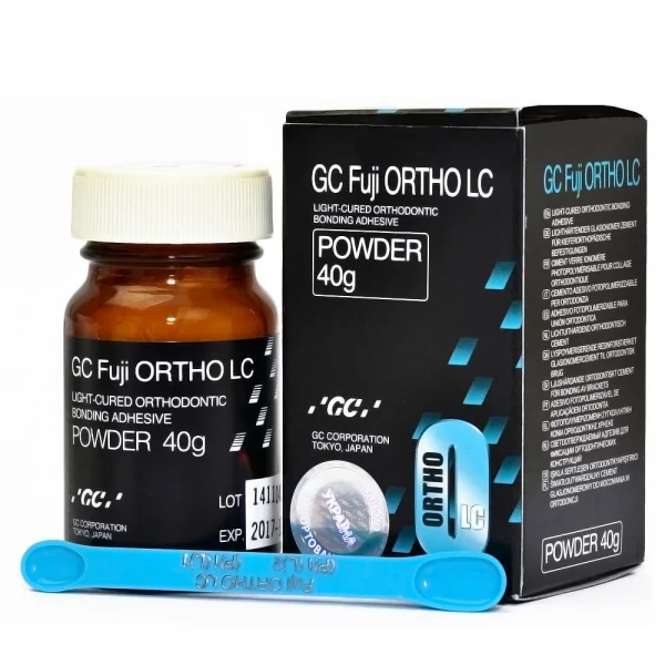 FUJI ORTHO LC призначений для фіксації брекетів, кілець і шин. Полімеризація світлом забезпечує подовжений комфортний робочий час. Відмінюється від звичних композитних ортондонтичних фіксуючих цементів. не тільки лояльним, але навіть зміцнюючим впливом на емаль.