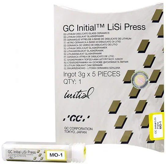 Таблетки дисилікату літію для пресування INITIAL LiSi Press MO від японського бренду GC мають середню опаковість, широко використовуються в зуботехнічній стоматології.