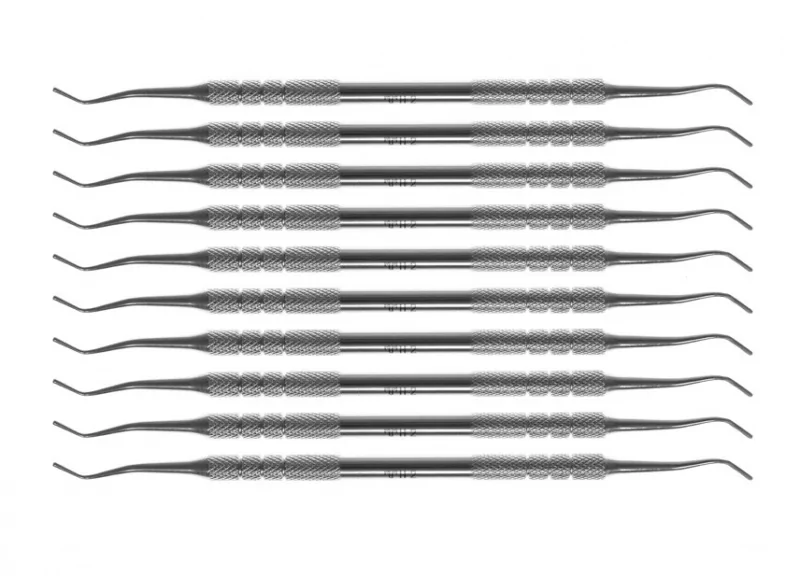 - Гладилка – призначена для нагнітання, розподілу та попереднього формування внесеної маси пломбувального матеріалу в обробленої каріозної порожнини. Вибір робочого інструменту диктується розміром, формою та місцезнаходженням каріозної порожнини;