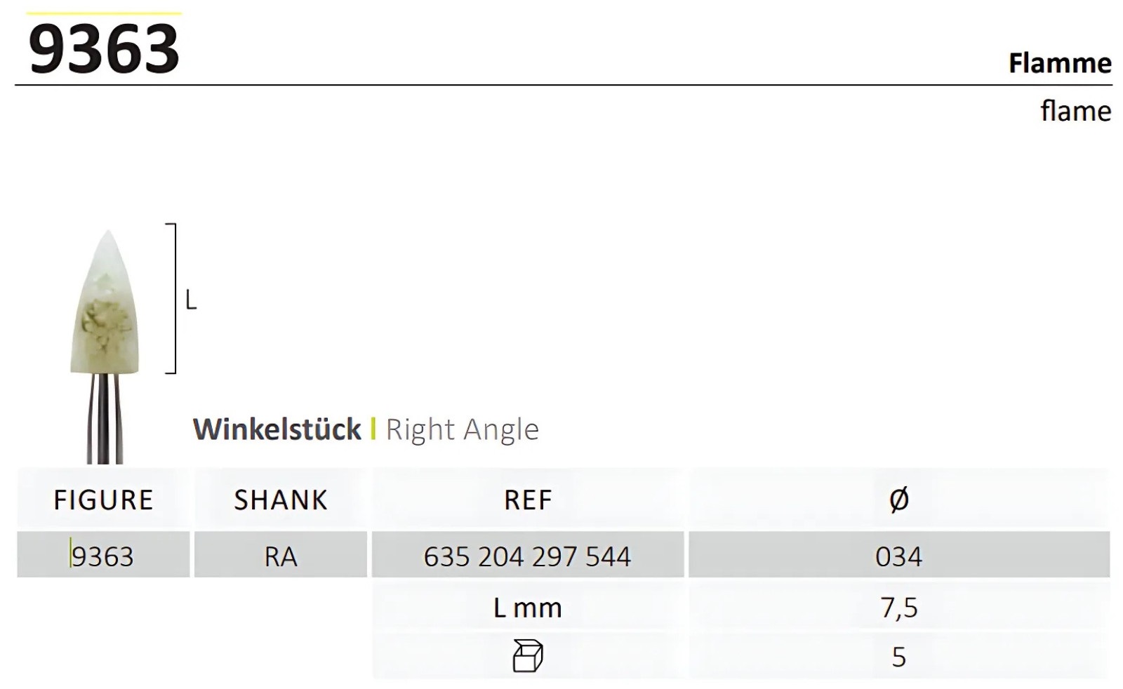 Технічні характеристики Головка полірувальна Jota 9363.204.034 (для зняття залишків цементу після брекетів)