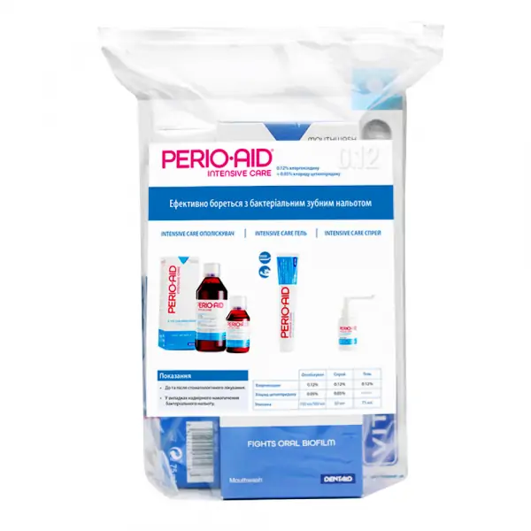 PERIO-AID 0.12% призначений для зменшення кількості бактерій у ротовій порожнині та для боротьби з нальотом. Є ефективним засобом для боротьби із захворюванням ясен: пародонтитом та гінгівітом. Має широкий спектр дії проти патогенних бактерій, грибів, вірусів та дріжджів. Не містить спирту та ароматичних олій.