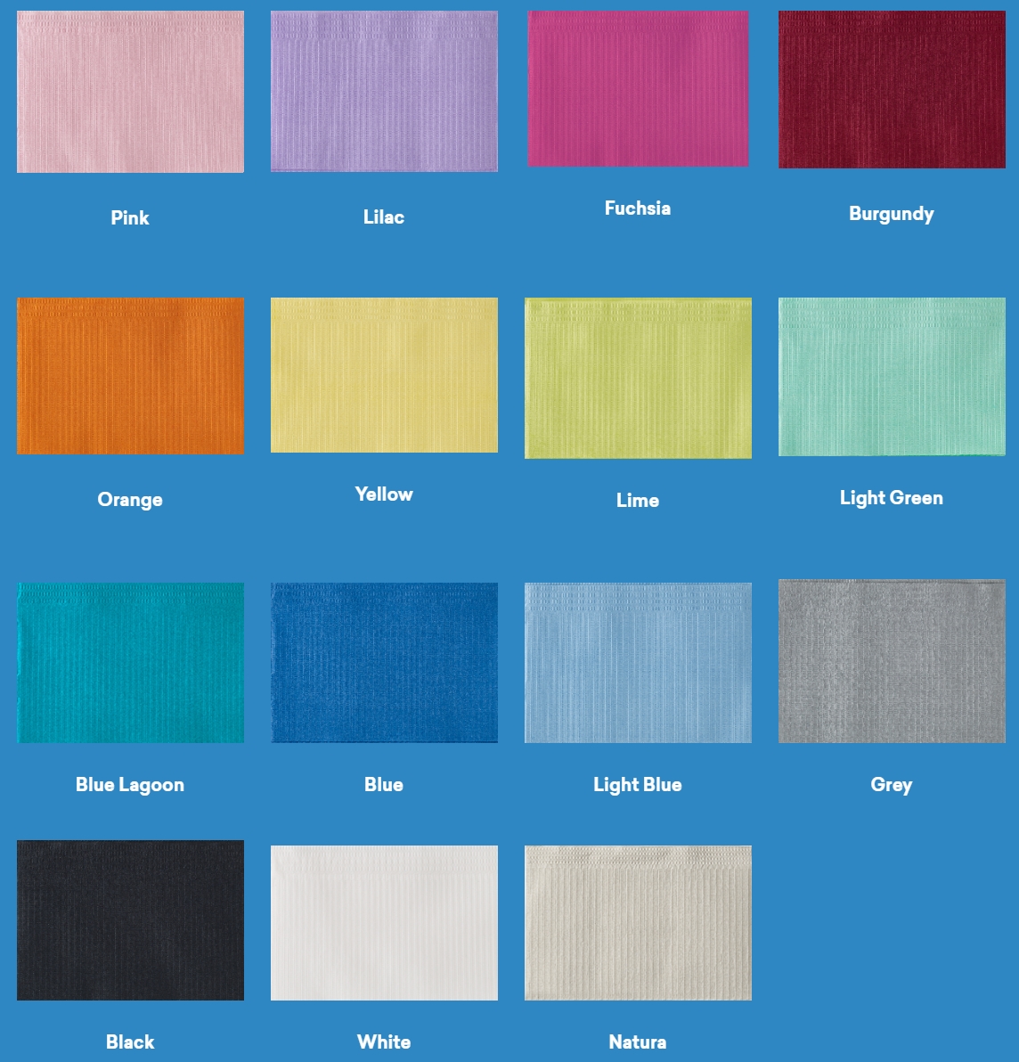 - Колір рожевий, жовтий, сірий, білий, темно-зелений, синій, зелений лайм, помаранчевий, бордовий, чорний, блакитний, світло-зелений, фіолетовий