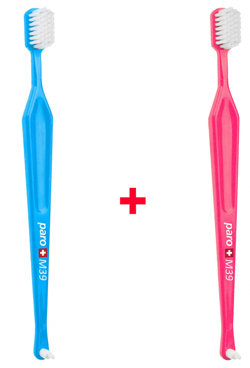 Набір Paro M39 для пари (Paro Swiss) зубні щітки середньої жорсткості рожева та блакитна