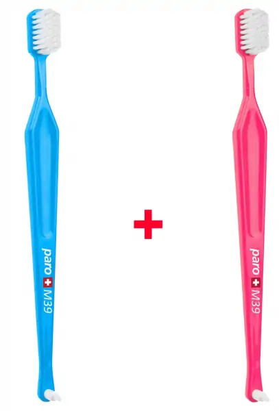 Відгуки Набір Paro M39 для пари (Paro Swiss) зубні щітки середньої жорсткості рожева та блакитна