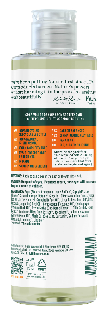 Відгуки Натуральний гель для душу з грейпфрутом та апельсином Faith In Nature