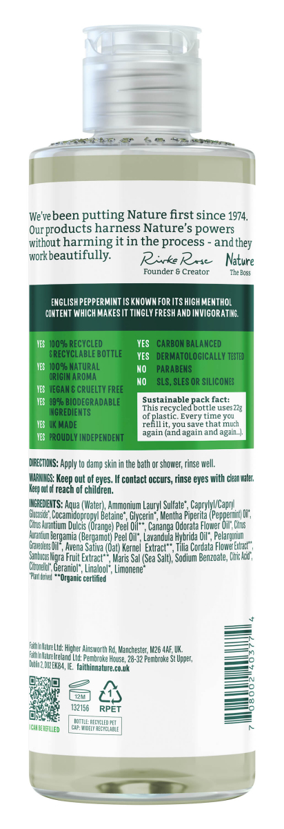 Натуральний гель для душу з м'ятою Faith In Nature, 400 мл