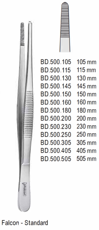 Технічні характеристики Пінцет 130 мм, Falcon BD.500.130, Standard, анатомічний