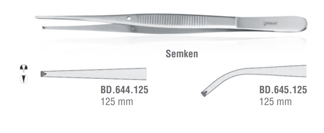 Пінцет стоматологічний вигнутий FALCON BD.645.125 довжиною 125 мм входить у стандартний набір, має тонку вузьку конструкцію.