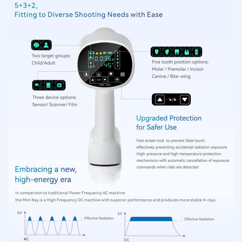 Портативний рентген апарат Mini Ray має бездротове виконання, що підвищує ергономіку під час роботи з пристроєм. Важить прилад лише 2,2 кг.