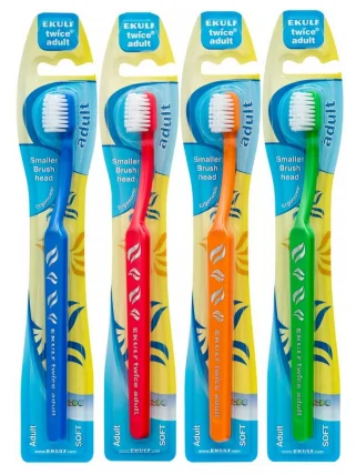 EKULF Twice Adult (630) - спеціалізована зубна щітка, призначена для комплексного догляду за зубами користувачам з чутливістю зубів і ясен, а також з такими захворюваннями, як пародонтит і пародонтоз. Розробниками виробу враховано всі вікові особливості, щітка ідеально пристосована до будови ротової порожнини пацієнта.