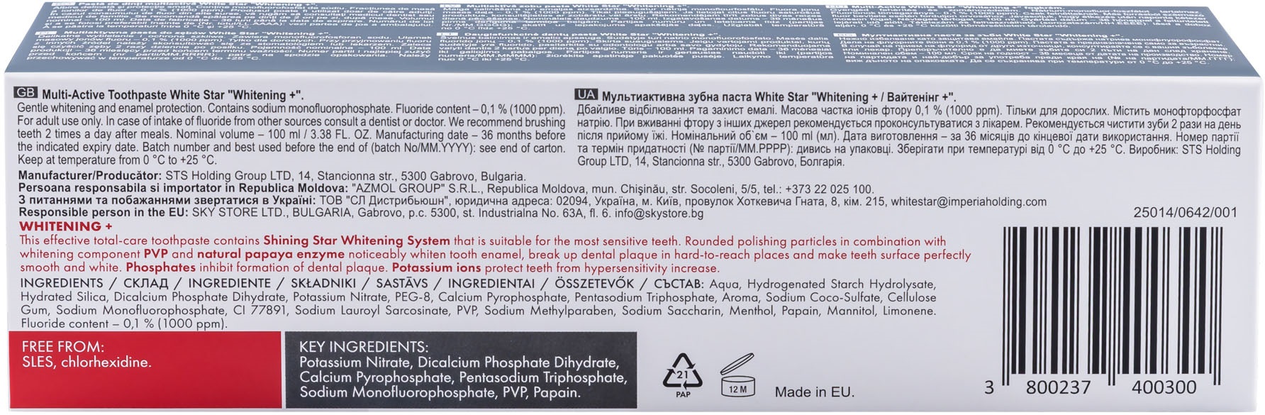Технічні характеристики Зубна паста Multi-Active Toothpaste White Star Whitening+, 100 мл (3800237400300)